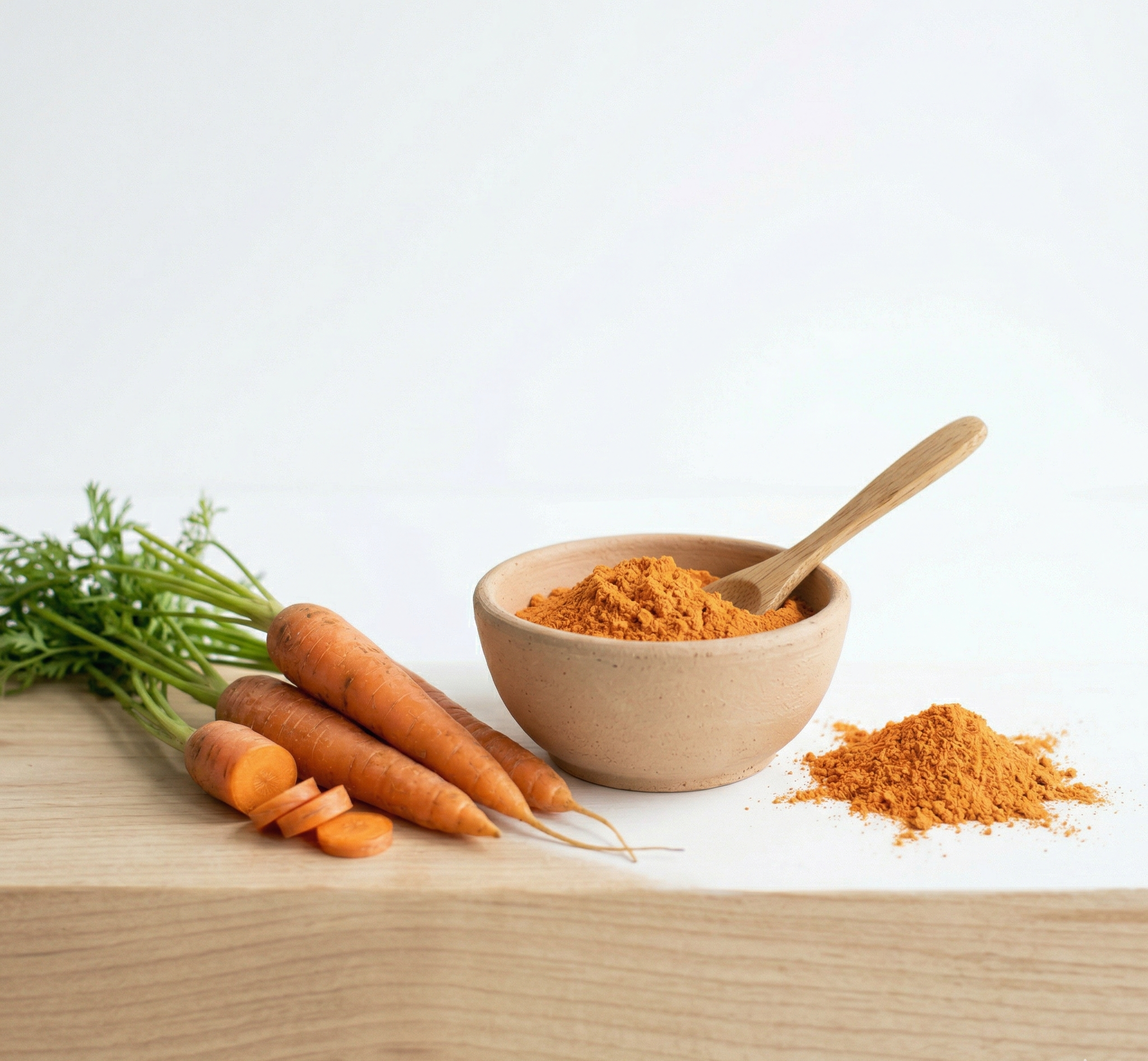 Burkānu pulveris kosmētikai — dabīgs beta-karotīna un vitamīna A avots DIY kosmētikas receptēm. Pievieno ādas kopšanas krēmiem, maskām, ziepēm un skrubjos.